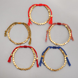 Pulseira de contas de cobre tibetano, artesanal, corda de sorte, bracelete & pulseiras para mulheres homens, de algodão, fio de presente, joias originais