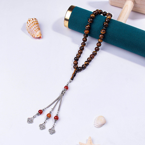 Rosário muçulmano de estilo clássico com 33 contas de 10 milímetros Olho de Tigre Pedra Mão-amarrado Handheld Rosário.